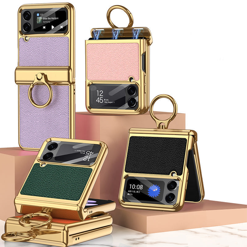 Funda de teléfono con bisagra magnética de piel electrochapada para Galaxy Z Flip 4 5G