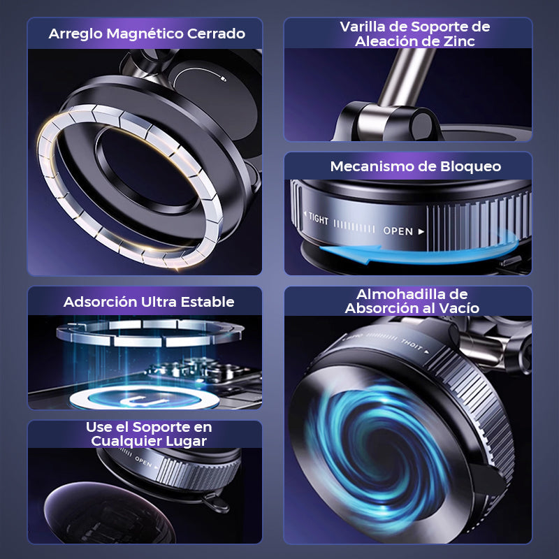 🔥Oferta Relámpago🔥 Soporte de Celular para Auto con Succión al Vacío