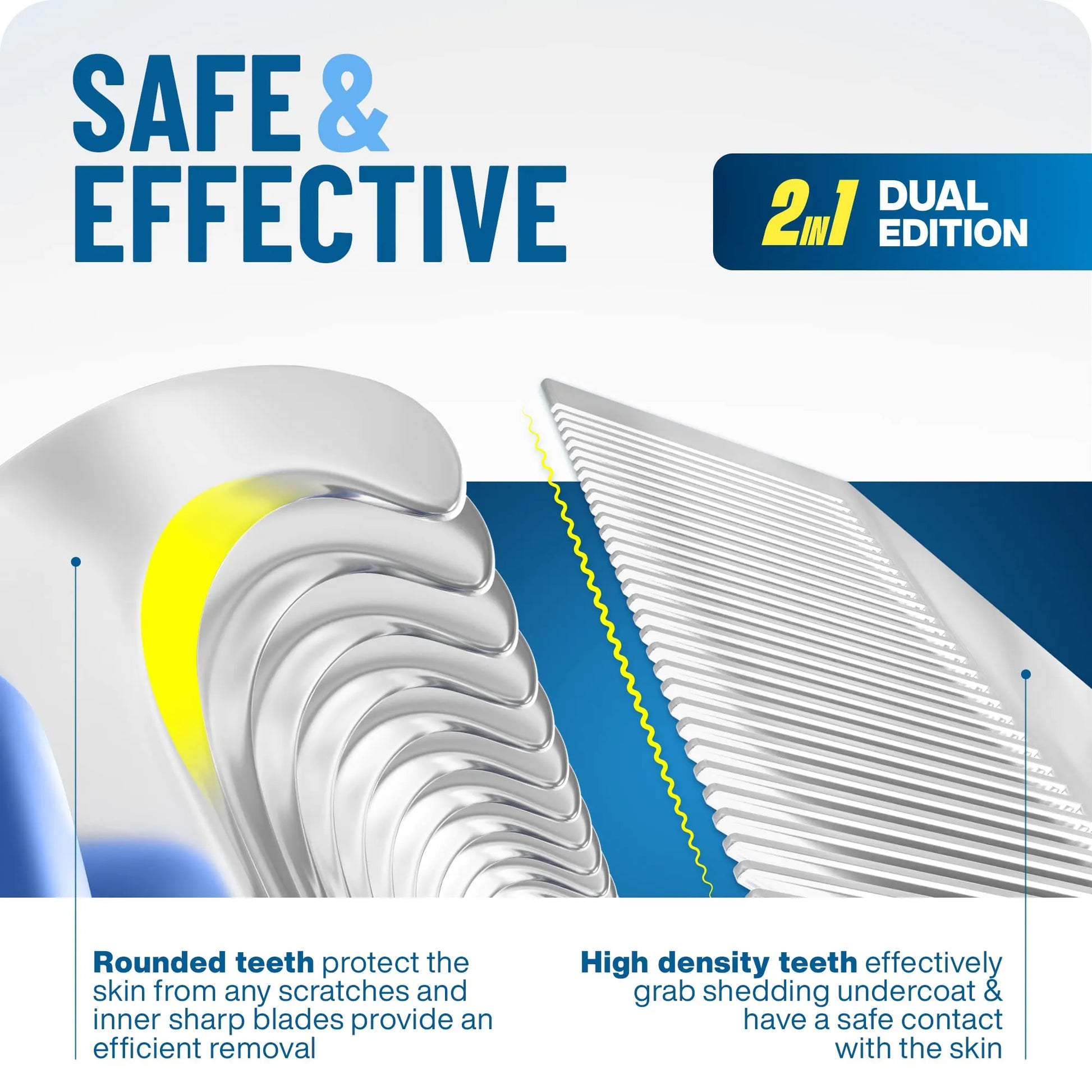 Kratzen, schmerzfrei – die abgerundeten Enden der Zähne massieren die Haut Ihres Haustieres sanft, ohne sie zu zerkratzen. Gleichzeitig ist die Innenseite der Zähne scharf genug, um selbst hartnäckige Verfilzungen, Knoten und Knoten mühelos zu durchtrennen.
