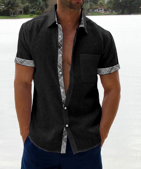 Oferta de verano-49 % OFF🔥 --- Camisa informal con botones y cuello a cuadros para hombre